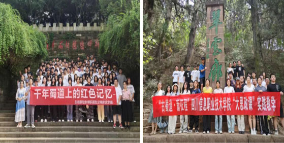 四川信息職業技術學院與6個蜀道文化資源點共建實踐教學基地,組織“蜀道初心行”“蜀道綠地行”等實踐活動。成都世運會“蜀道文化展示區”的技術保障現場,有學院師生忙碌的身影;“蜀道鑄魂·行走淬志”實踐活動中,學校馬克思主義學院教師現場講授紅色故事,信息技術專業師生為村民開展智能手機使用培訓,“用技能服務社會、用行動傳播文化”,成為學生踐行蜀道精神的生動注腳。