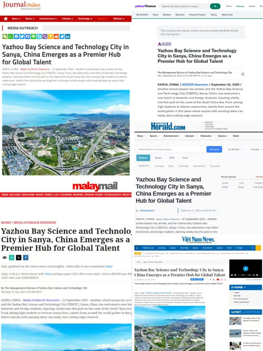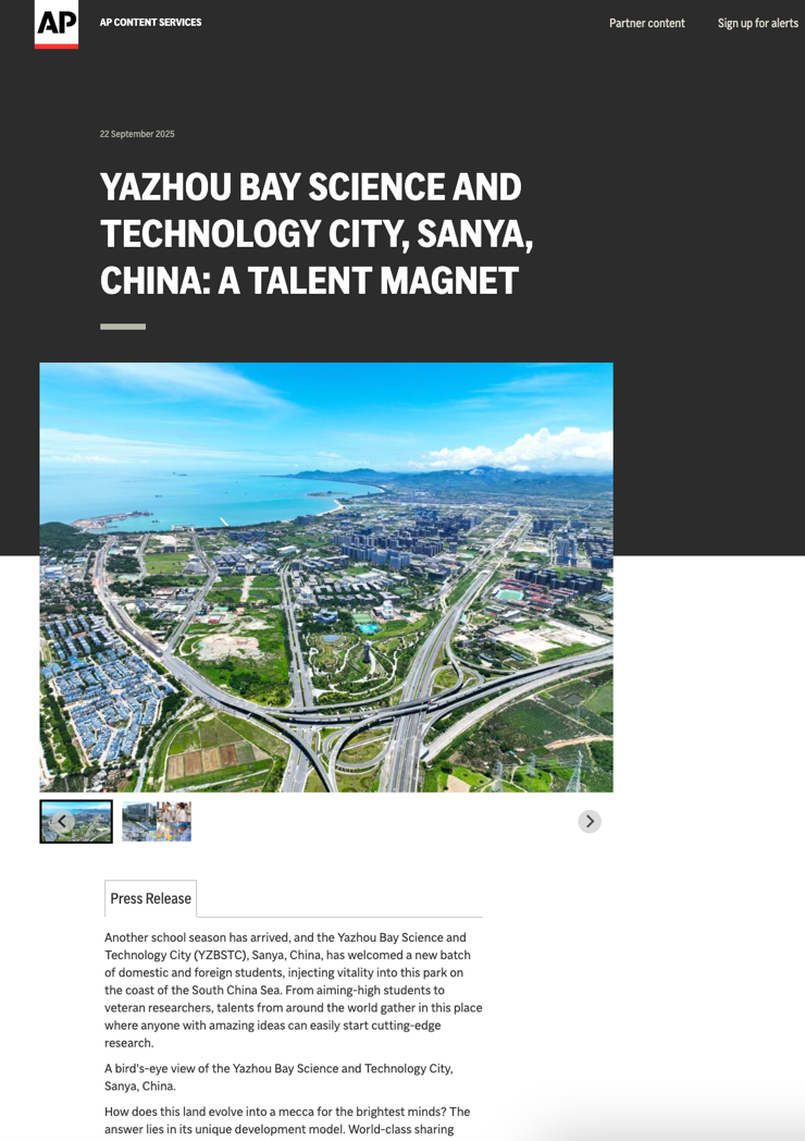 近日,全球通訊社聯盟發布文章《Yazhou Bay Science and Technology City in Sanya, China Emerges as a Premier Hub for Global Talent》,介紹中國三亞崖州灣科技城高新區近年為打造全球人才聚集地采取的創新舉措和顯著成果。