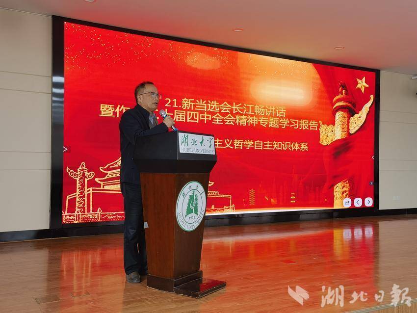 大會特別設置專題學習環節,教育部長江學者、湖北大學資深教授江暢以“學習貫徹黨的二十屆四中全會精神,推進傳統文化教育創新發展”為題作主旨報告。報告緊扣“傳統與現代融合”核心命題,結合湖北文化產業發展實際,從內容創新、形式載體、協同機制三大維度提出突破路徑,為新一屆理事會工作提供了堅實理論支撐。