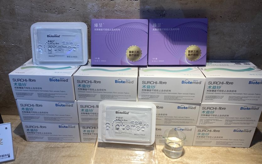在科技成果轉(zhuǎn)化領(lǐng)域,博益特以“蟹殼變身高科技止血材料”的實踐,成為產(chǎn)學研融合的典范。其研發(fā)的生物可降解止血材料“術(shù)益紗”,遇水后迅速形成透明凝膠,兼具止血、抑菌、促進創(chuàng)面愈合等功能。臨床數(shù)據(jù)顯示,其效果優(yōu)于國外同類產(chǎn)品,價格卻降低超50%。