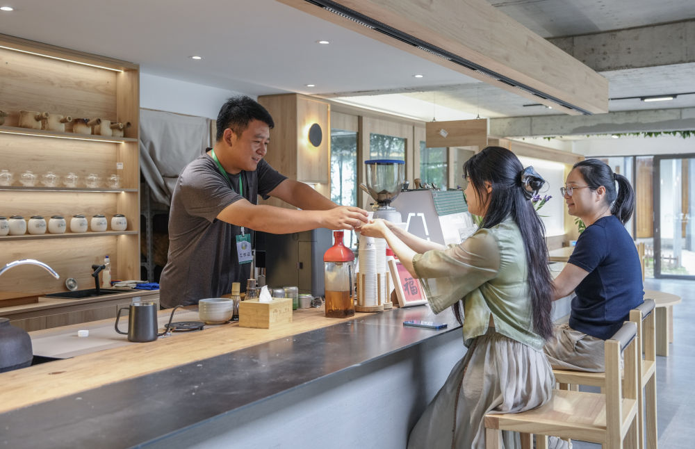 一家民宿里,青年創客制作咖啡給游客品嘗 徐昱 攝